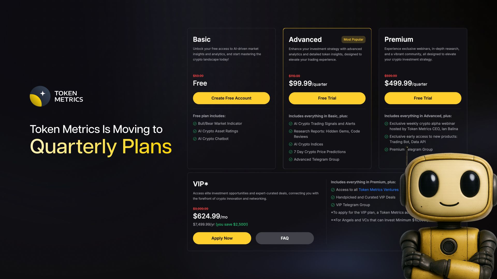 We’re updating our subscription options to give you greater flexibility and more control over your Token Metrics experience.